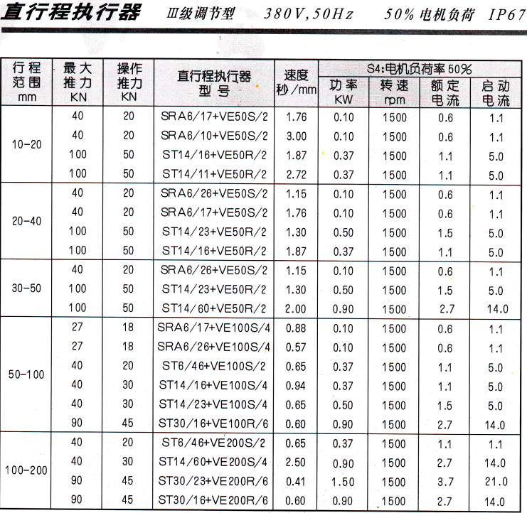 伯納德直行程電動執行器型号表: